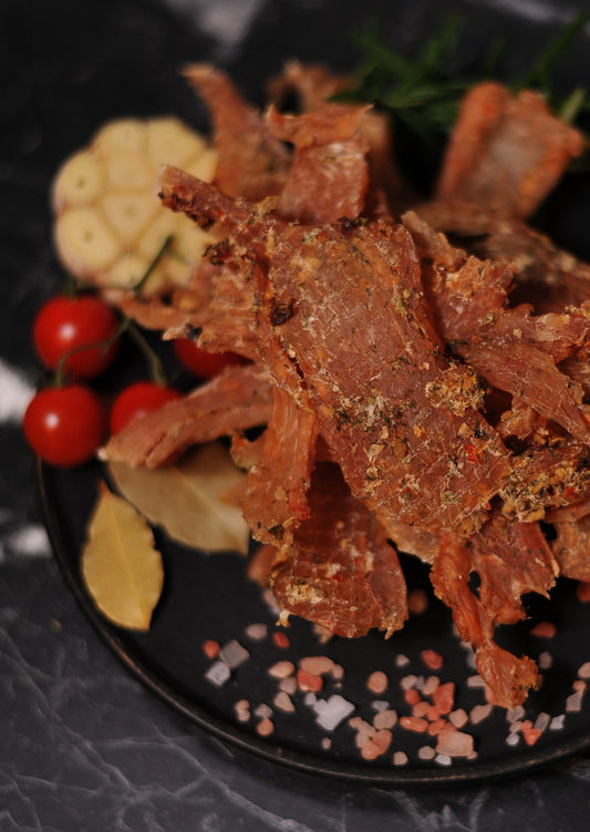 Select pieces of beef cut into small oblong pieces. Then the pieces of beef are salted and marinated in a marinade of spicy or sweet spices. At this time, beef acquires a characteristic taste. The continuous stage is natural smoking (shavings) and drying. The meat is dried, which makes it suitable for long-term storage.