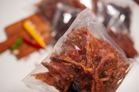 Cut the chicken fillet into small oblong pieces. Then the sliced fillet pieces are dried and marinated for several days in a marinade of spicy or sweet spices, acquiring a characteristic taste. The next stage is natural smoking (shavings) and drying. The meat is dried, which makes it suitable for long-term storage.